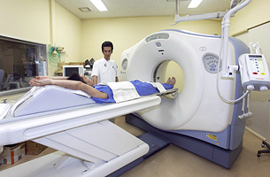 1回転で複数のデータを収集できるマルチスライスCTにより、体の断面の撮影を行います。造影剤を使用して心臓等の撮影を行ったり、より細かい断面により3次元画像を作成することもできます。
